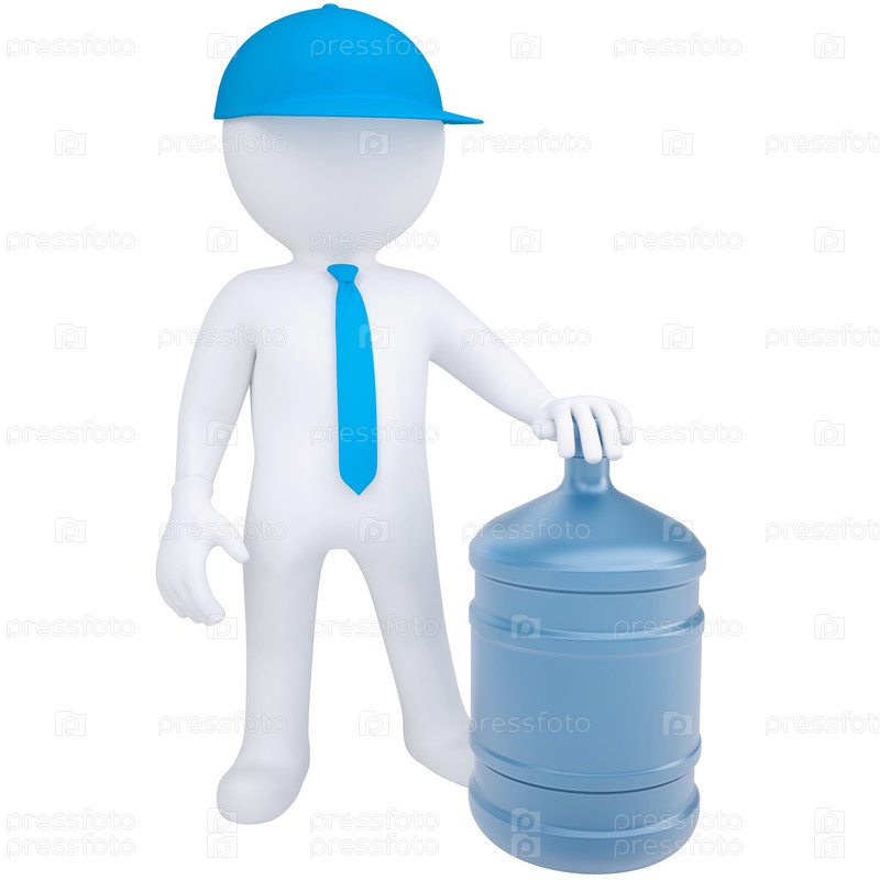 3D белый человек с большой бутылкой воды