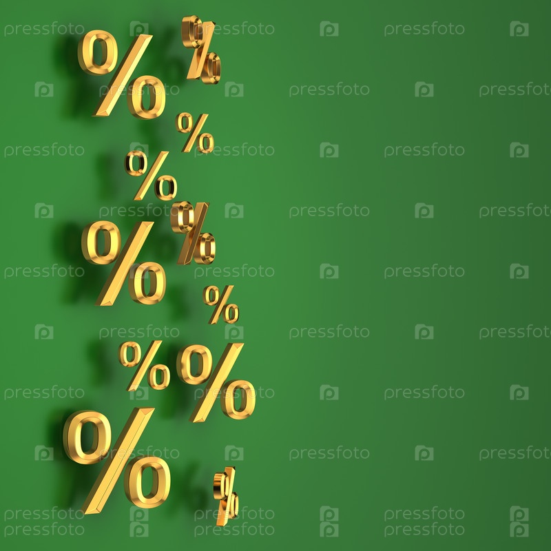 Золотые проценты на зеленом фоне