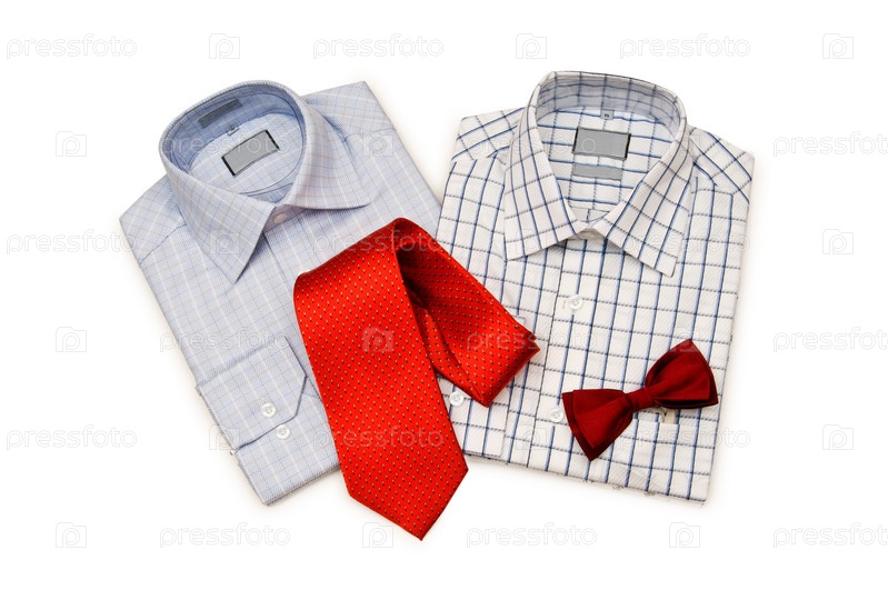 Две рубашки, галстук и бабочка на белом фоне