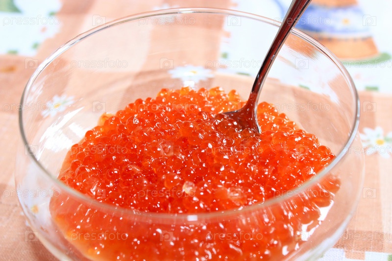 Красная икра с ложкой в тарелке