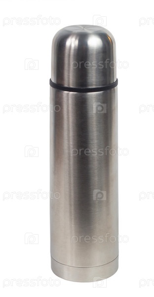 Металлический термос, изолированный на белом фоне с путем отсечения