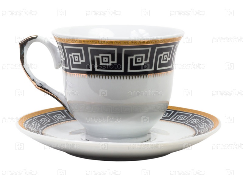 Английская чашка с блюдцем на белом фоне