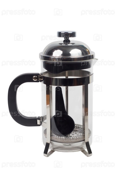 Стеклянный заварочный чайник на белом фоне
