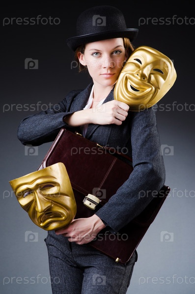 Женщина с маской в концепции лицемерия