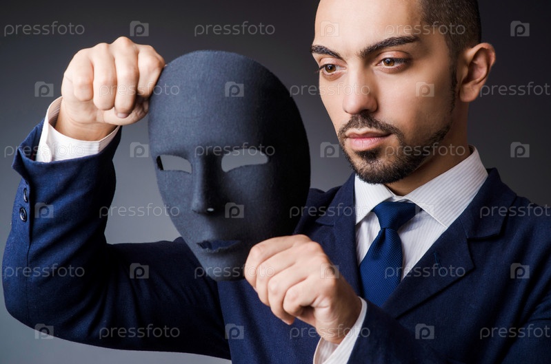 Человек с черной маской в студии