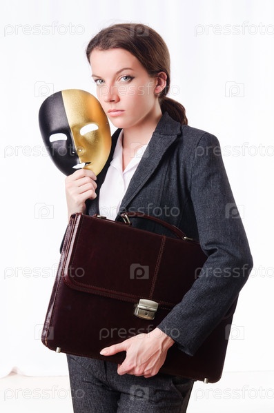 Женщина с маской в концепции лицемерия