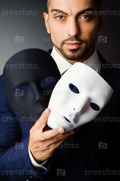 Мужчина с черной маской в студии