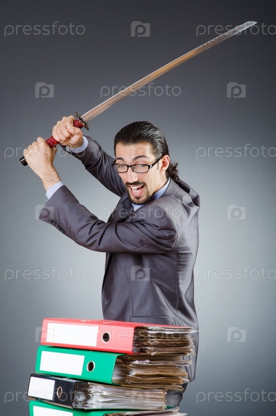 Мужчина с мечом и бумагами