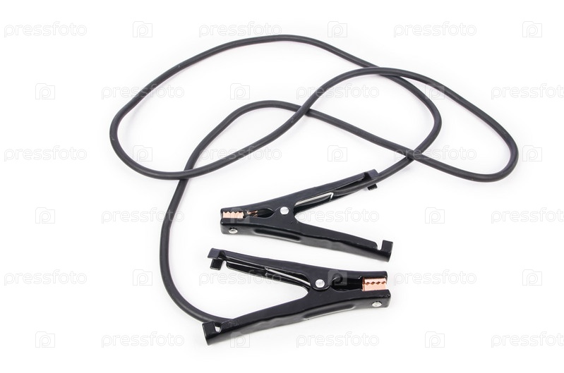 Перемычки автомобильного аккумулятора на белом