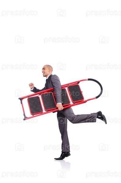 Бизнесмен с лестницей на белом