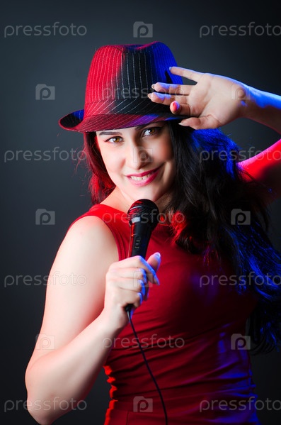 Исполнительница на дискотеке с микрофоном