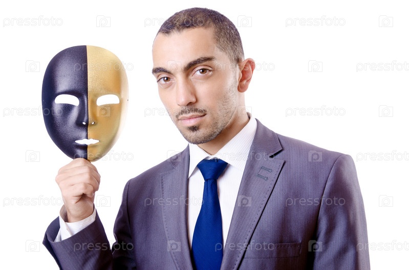 Бизнесмен с маской в концепции лицемерия
