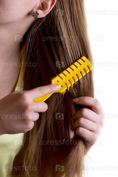Девушка расчесывает волосы