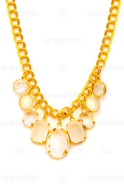 Золотое ожерелье на белом фоне