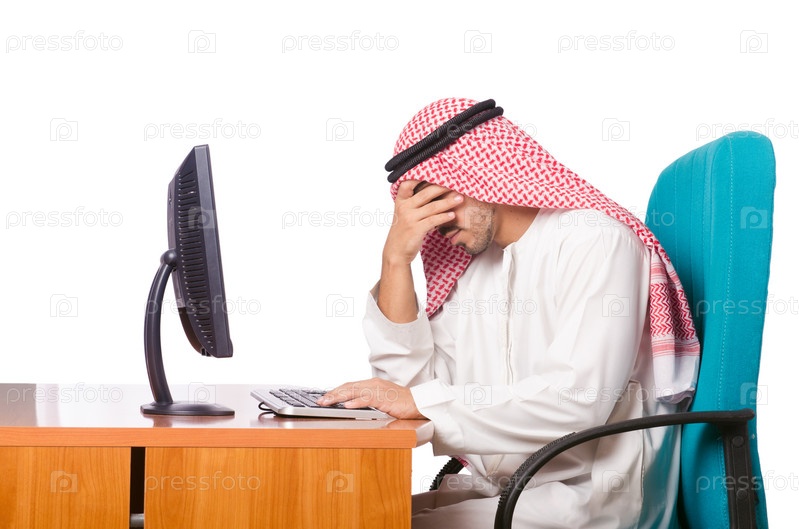 Арабский бизнесмен работает на компьютере