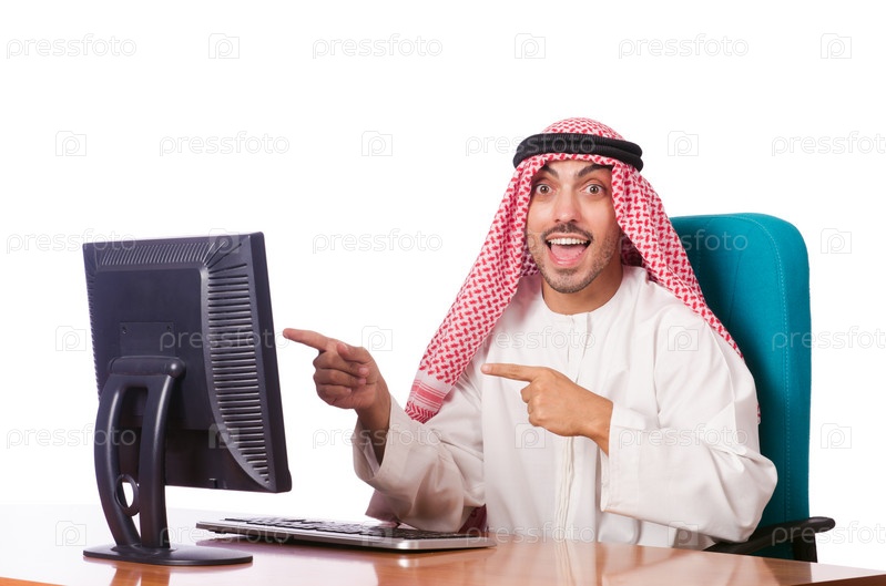 Арабский бизнесмен работает на компьютере