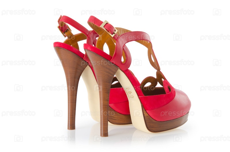 Красная стильная женская обувь на белом фоне