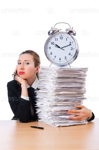 Бизнес-леди с гигантским будильником