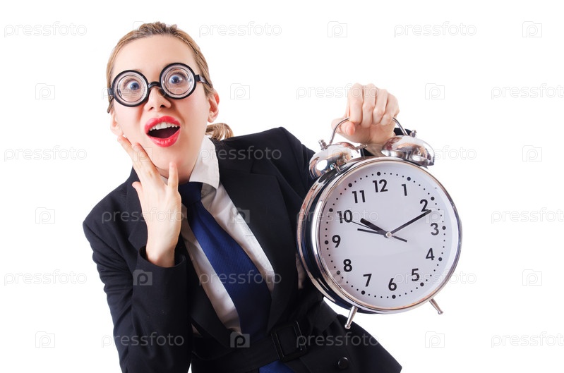 Бизнес-леди с гигантским будильником