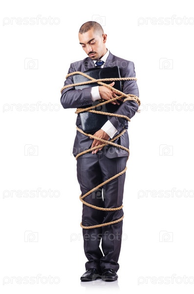 Бизнесмен, связанный веревкой