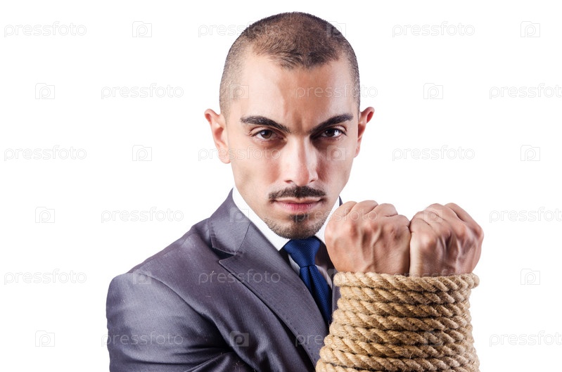 Бизнесмен, связанный веревкой