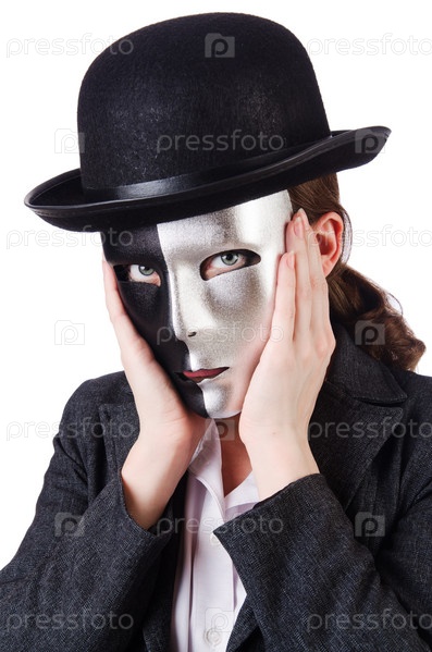 Женщина с маской в концепции лицемерия