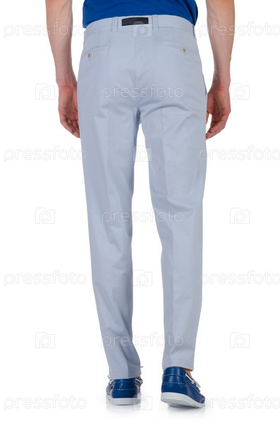 Концепция моды с брюками на белом фоне
