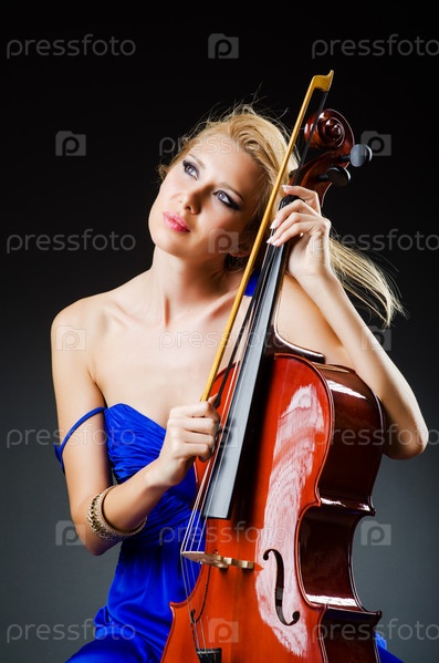 Привлекательная женщина с виолончелью в студии