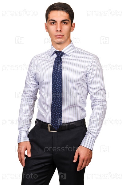 Модель в рубашке, изолированная на белом фоне