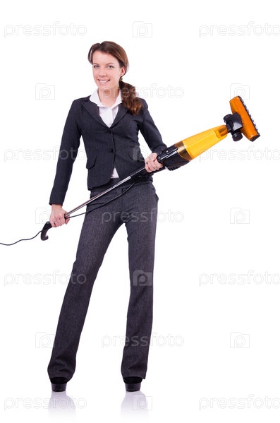 Молодая женщина с пылесосом