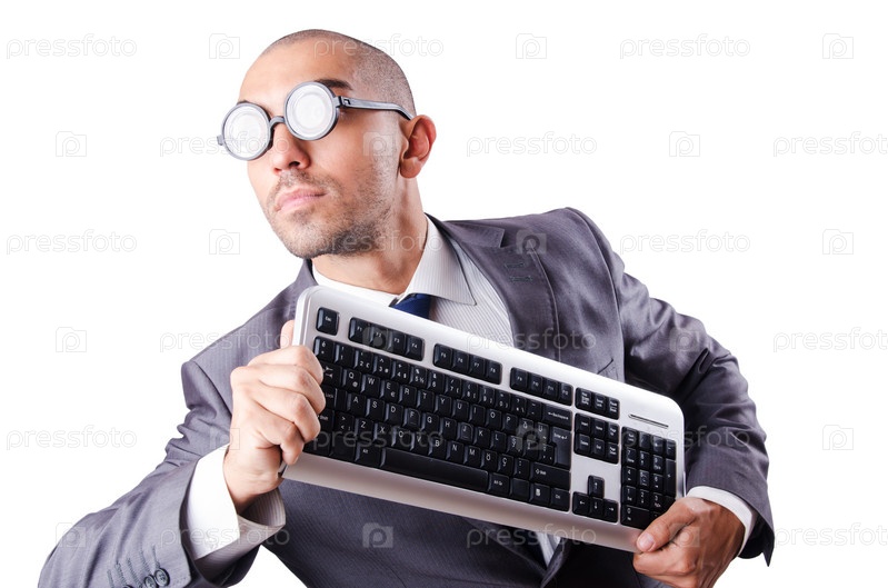 Ботаник с клавиатурой на белом фоне