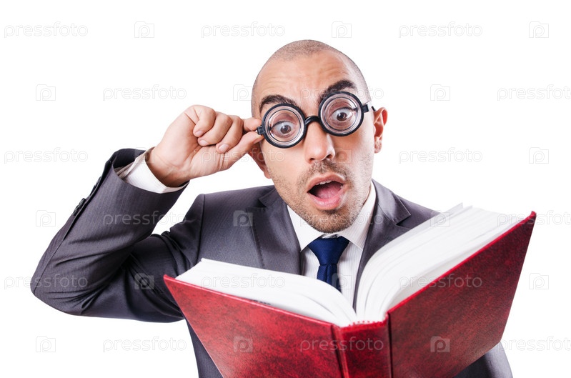 Смешной ботаник на белом фоне