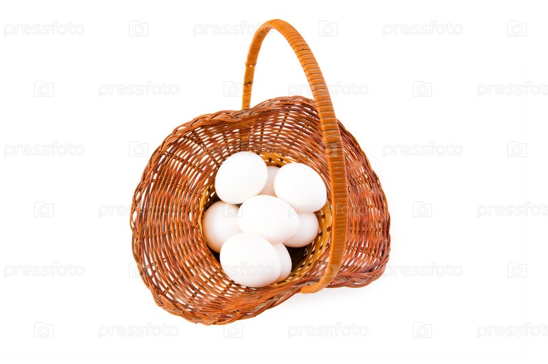 Корзина, полная яиц изолированных на белом