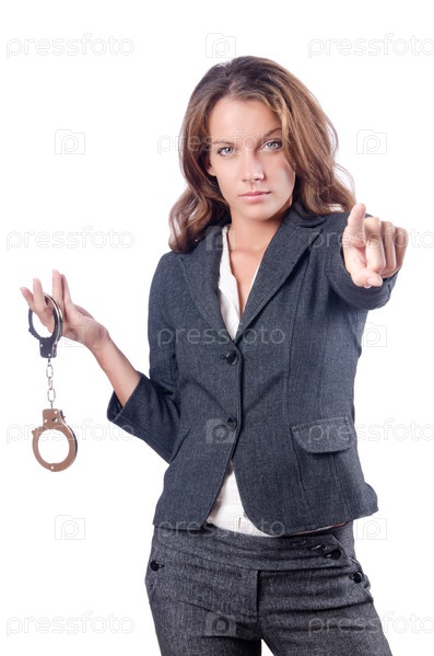 Бизнес-леди с наручниками на белом фоне