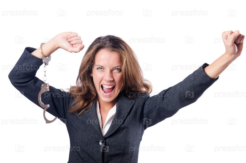 Бизнес-леди с наручниками на белом фоне
