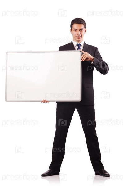 Молодой предприниматель с пустым плакатом