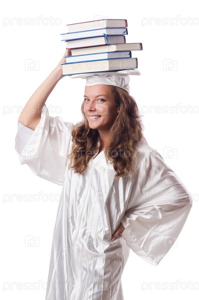 Выпускница с книгами на белом