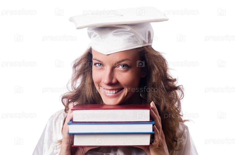 Выпускница с книгами на белом