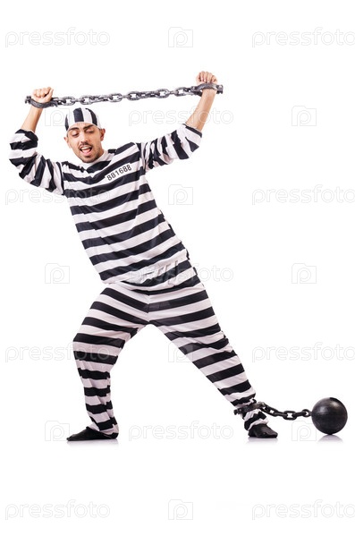 Осужденный преступник в полосатой форме