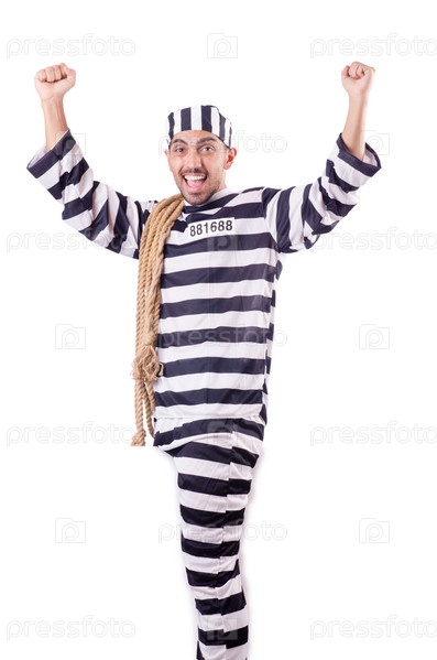 Осужденный преступник в полосатой форме