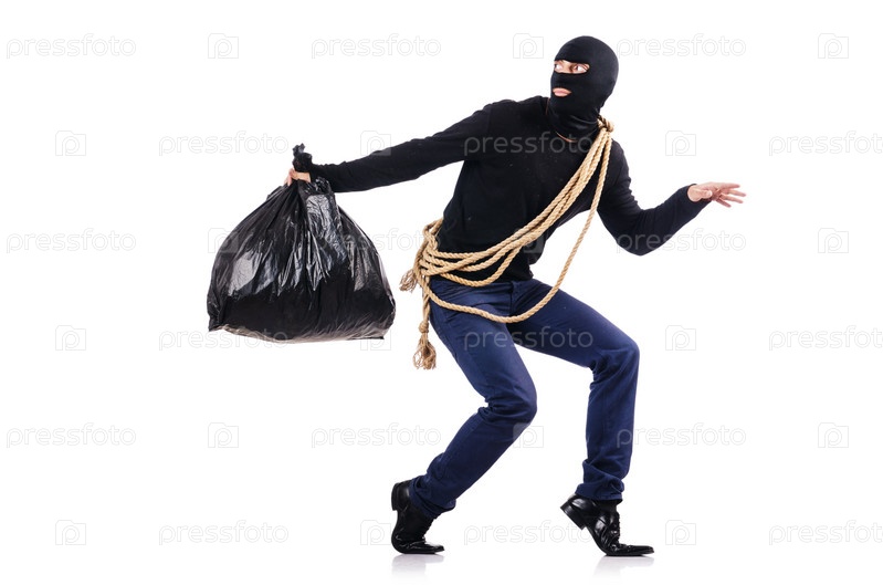 Грабитель в маске на белом