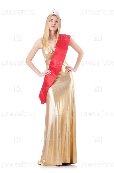 Королева красоты на конкурсе, изолированная на белом фоне