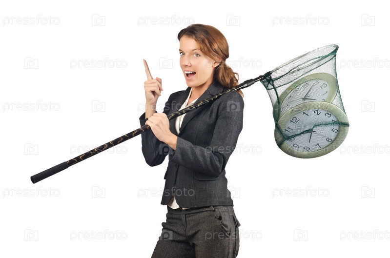 Бизнес-леди с сачком и часами