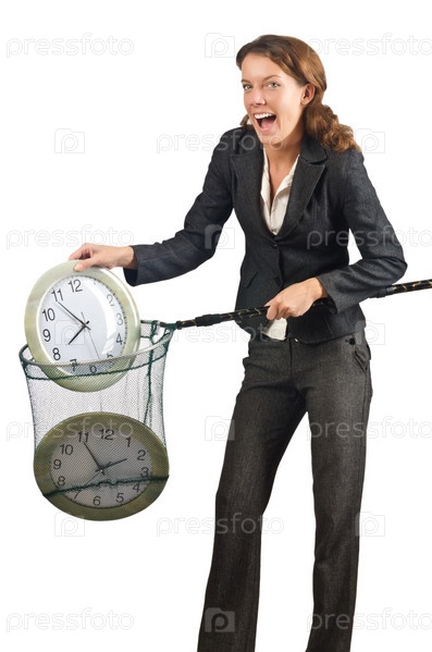 Бизнес-леди с сачком и часами