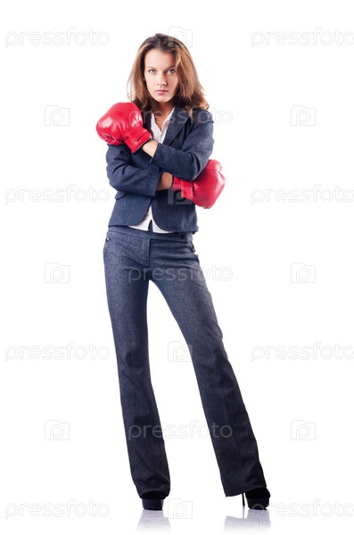 Молодая бизнес-леди в боксерских перчатках
