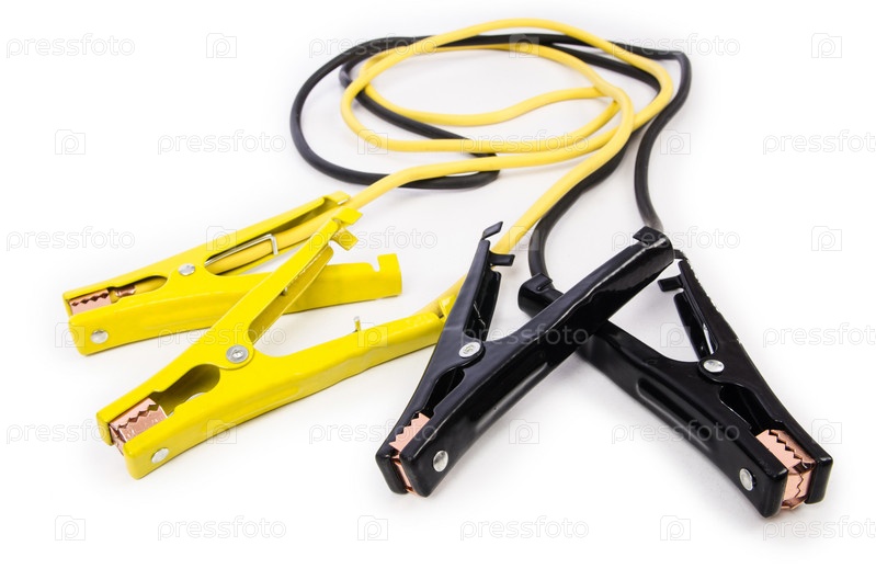 Зажимы для автомобильного аккумулятора на белом