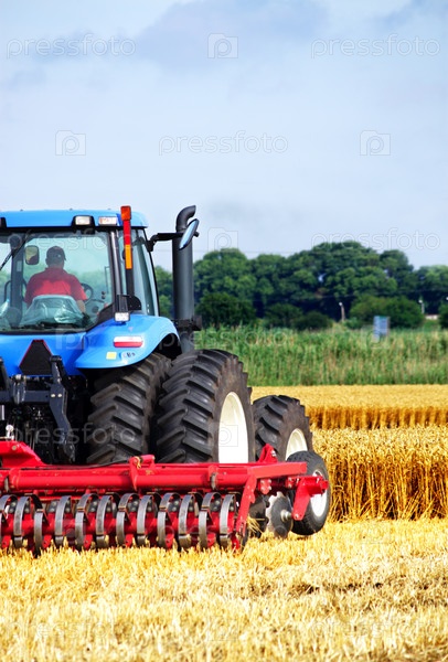 Трактор в поле на уборке урожая