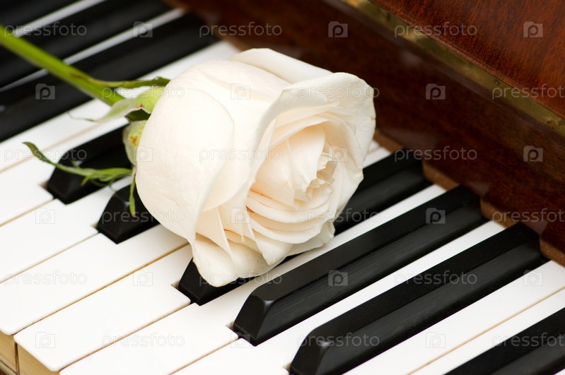 Романтическая концепция - белая роза на клавишах пианино