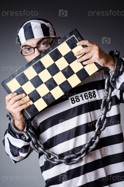 Осужденный преступник в полосатой форме