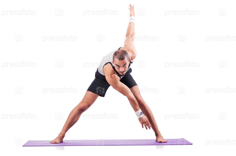 Мужчина делает упражнения на белом фоне